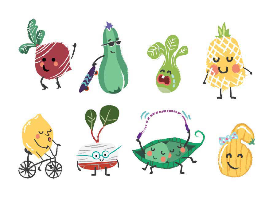 These illustrations were commissioned by SPUD.ca, for a program that delivered fruits and veggies to elementary schools.